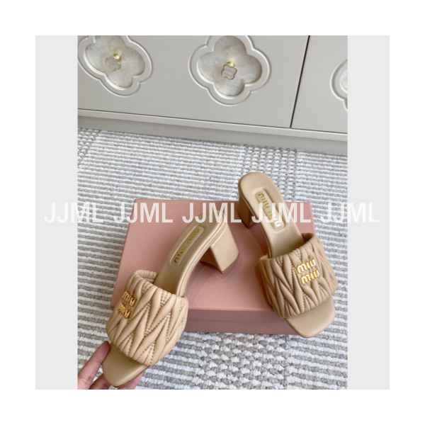 미우미우 마테라쎄 나파 레더 뮬 샌들 베이지 > 미우미우