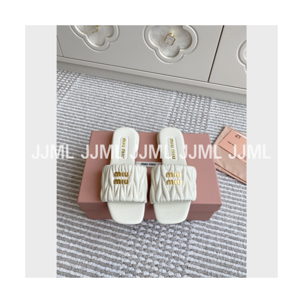 미우미우 마테라쎄 나파 가죽 슬라이드 아이보리
