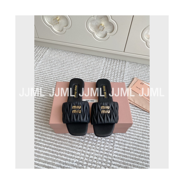 미우미우 마테라쎄 나파 가죽 슬라이드 블랙