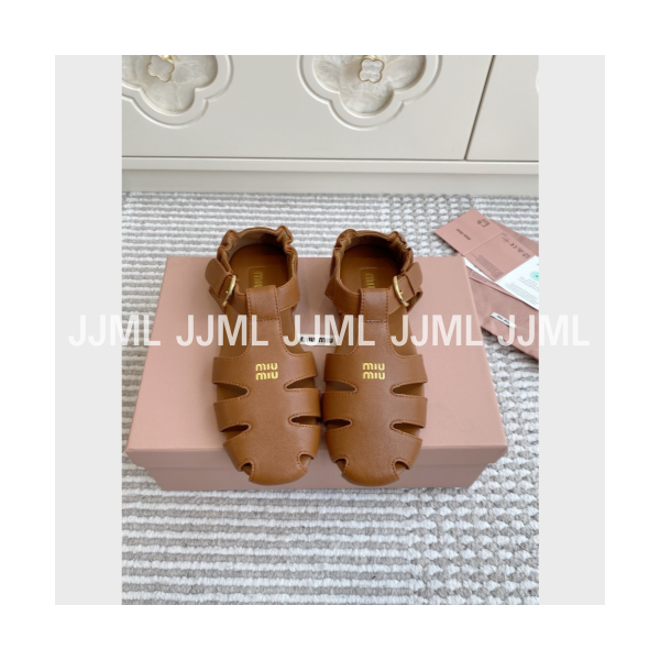 미우미우 나파 가죽 피셔맨 샌들 꼬냑